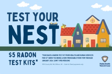 This January, in recognition of National Radon Awareness Month, Walworth County Health and Human Services will offer radon test kits to residents for just $5 with the donation of a non-perishable food item. The $5 price includes shipping and laboratory analysis. Normally priced at $15, the kits are supplied by the Kenosha/Walworth Radon Information Center. Donated food will be distributed through The Bridge Food & Diaper Bank, which supports local families experiencing food insecurity. This offer is limited to one test kit per person.